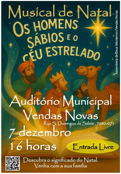 Domingo, dia 7 de Dezembro 2025, às 16h00, no Auditório Municipal de Vendas Novas